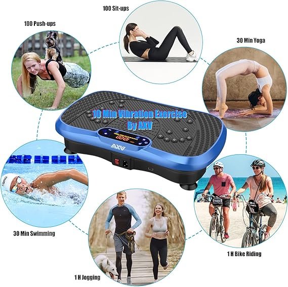 - ✅WHY WE CHOOSE AXV VIBRATION PLATE: Can be connected to phone via BT and used as BT speaker; Magnet health massage function; LED display shows time, speed and burnt fat making your workout visible; Compact size can be used anywhere & easy to carry and store; Anti-slip coating designed;Enhanced upgraded Ergonomic design shell ensures more durability and stability; Comes with Remote control ,Resistance Bands and detailed manual…everything you need.