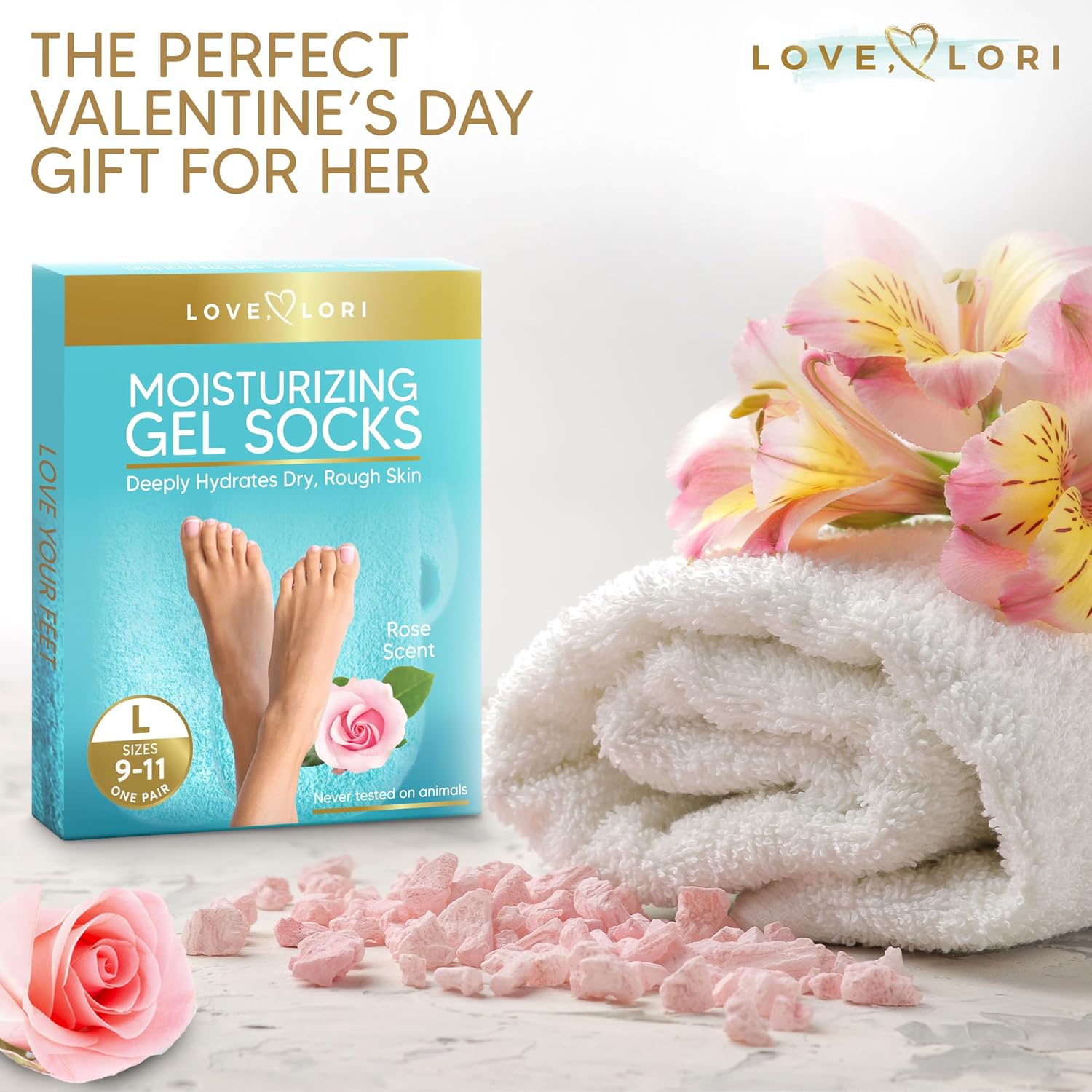 - Cozy Aloe Gel Socks – Leave your feet feeling soft and smooth with Love Lori Moisturizing Gel Socks. The close-toe design makes these soft gel socks comfortable to lounge around in creating cuddle-ready feet in 20 minutes.