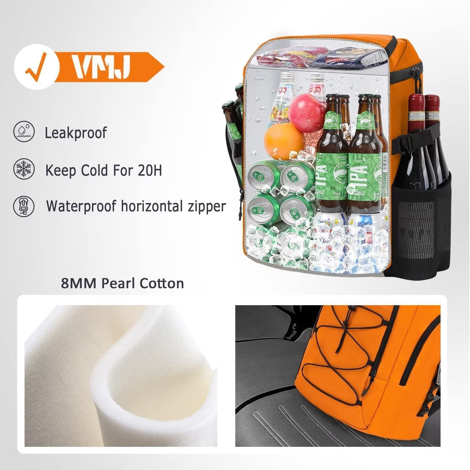VMJ Backpack Cooler 36 Cans Insulated Leakproof Lightweight Lunch Bag