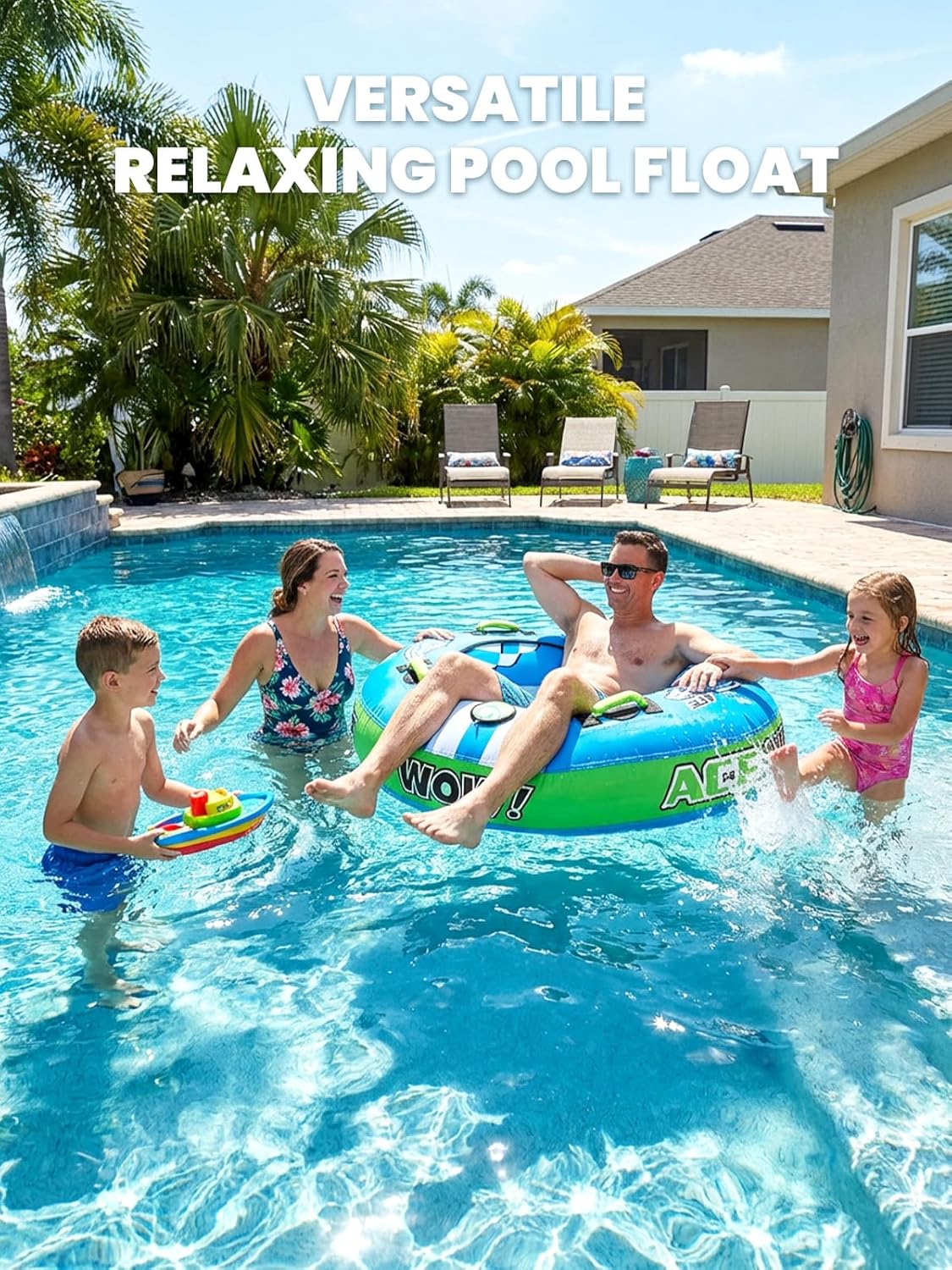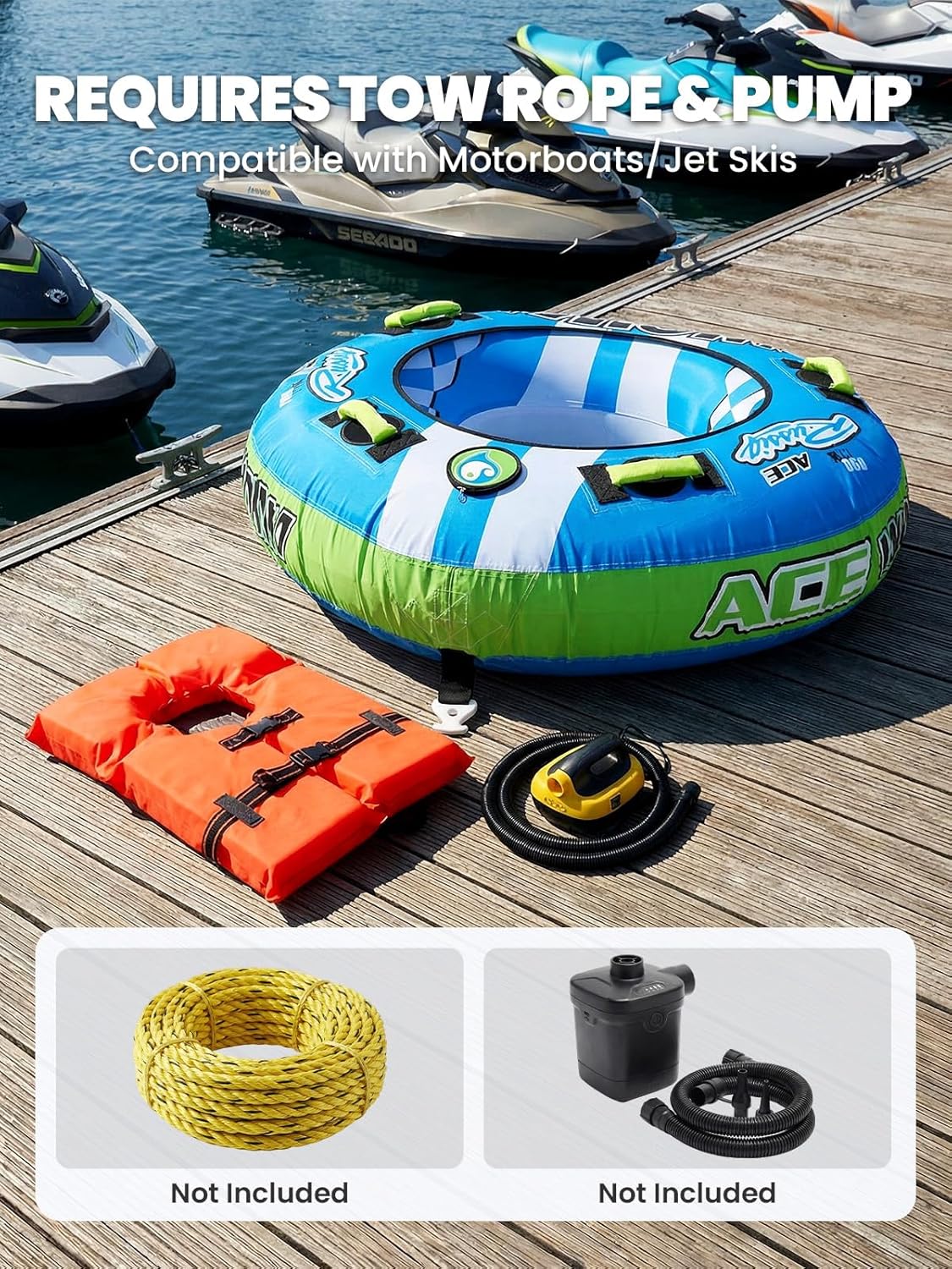 - DUAL-PURPOSE: TOW OR RELAX: More than just a thrill ride, this versatile tube doubles as a luxurious floating island. After the adrenaline rush, use it as a relaxing lounger in the pool, lake, or beach. It’s the perfect platform for sunbathing or socializing, helping you create memorable bonding moments with family and friends on the water